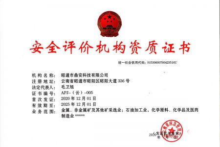 2003年11月10日,昭通市鼎安科技有限公司成立,初始主要從事第三方安全工程技術(shù)服務(wù),經(jīng)多年運營,發(fā)展為多專業(yè)綜合科技平臺,為社會提供多種專業(yè)技術(shù)服務(wù)工作。 現(xiàn)公司注冊資金為1200萬元,公司法定代表人:毛衛(wèi)旭。公司主要業(yè)務(wù):安全評價、安全標準化評審、安全工程技術(shù)服務(wù);環(huán)境監(jiān)測、職業(yè)衛(wèi)生檢測、檢驗;法律訴訟及非訴訟服務(wù);司法鑒定、固定資產(chǎn)投資項目節(jié)能服務(wù);工程咨詢;工程測量測繪;安全教育培訓等。是安全生產(chǎn)服務(wù)、安全教育培訓機構(gòu),也是環(huán)境監(jiān)測和職業(yè)衛(wèi)生服務(wù)機構(gòu),同時也是綜合的檢測檢驗、綜合科技平臺服務(wù)機構(gòu)。多年來為公、檢、法、司、軍、警、海關(guān)、仲裁、安監(jiān)、工礦商貿(mào)企業(yè)、社會團體及個人提供多專業(yè)技術(shù)服務(wù)。